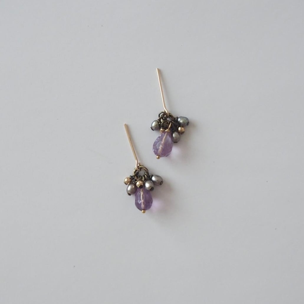 こちらは3種類の天然石を組み合わせた耳飾りです。