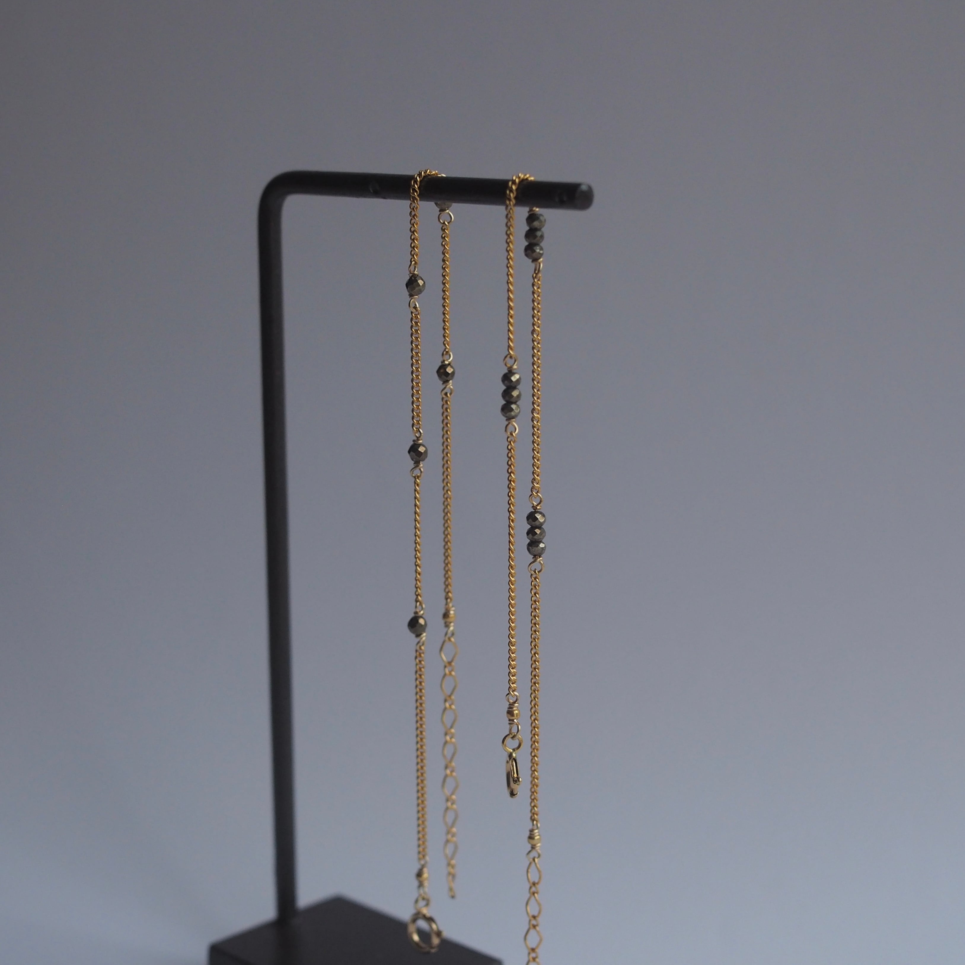 こちらは天然石パイライトと14kgf製チェーンとで作製したブレスレットです。