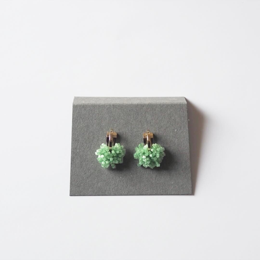 ビーズ編みの耳飾り(若葉) earring